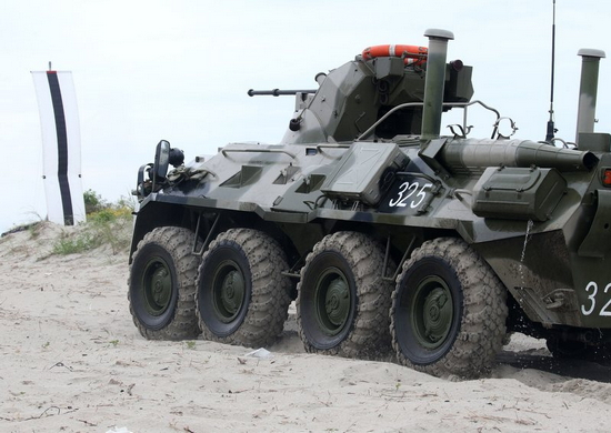 Экипажи БТР-82А, состоящие из граждан, призванных из запаса в рамках частичной мобилизации, на полигоне Хмелевка в Калининградской области совершенствуют мастерство по вождению боевых машин в сложных условиях местности. В ходе занятий водители выполняют приемы маневрирования на скоростных участках, совершают прохождение маршрута в составе колонны на максимальных и минимально допустимых скоростях, выполняют повороты и развороты различной сложности, а также преодолевают искусственные и естественные препятствия. На протяжении всего маршрута трассы экипажи следят за тактической обстановкой и преодолевают имитационные заграждения, на которых используются дымовые гранаты и взрыв пакеты. По прибытии на огневой рубеж наводчики скорострельной 30-мм пушки поражают мишени, имитирующие технику и огневые позиции условного противника. Стрельба ведется как по появляющимся, так и по движущимся мишеням на дистанциях от 500 до 900 метров. С целью корректировки огня применяются трассирующие боеприпасы. З