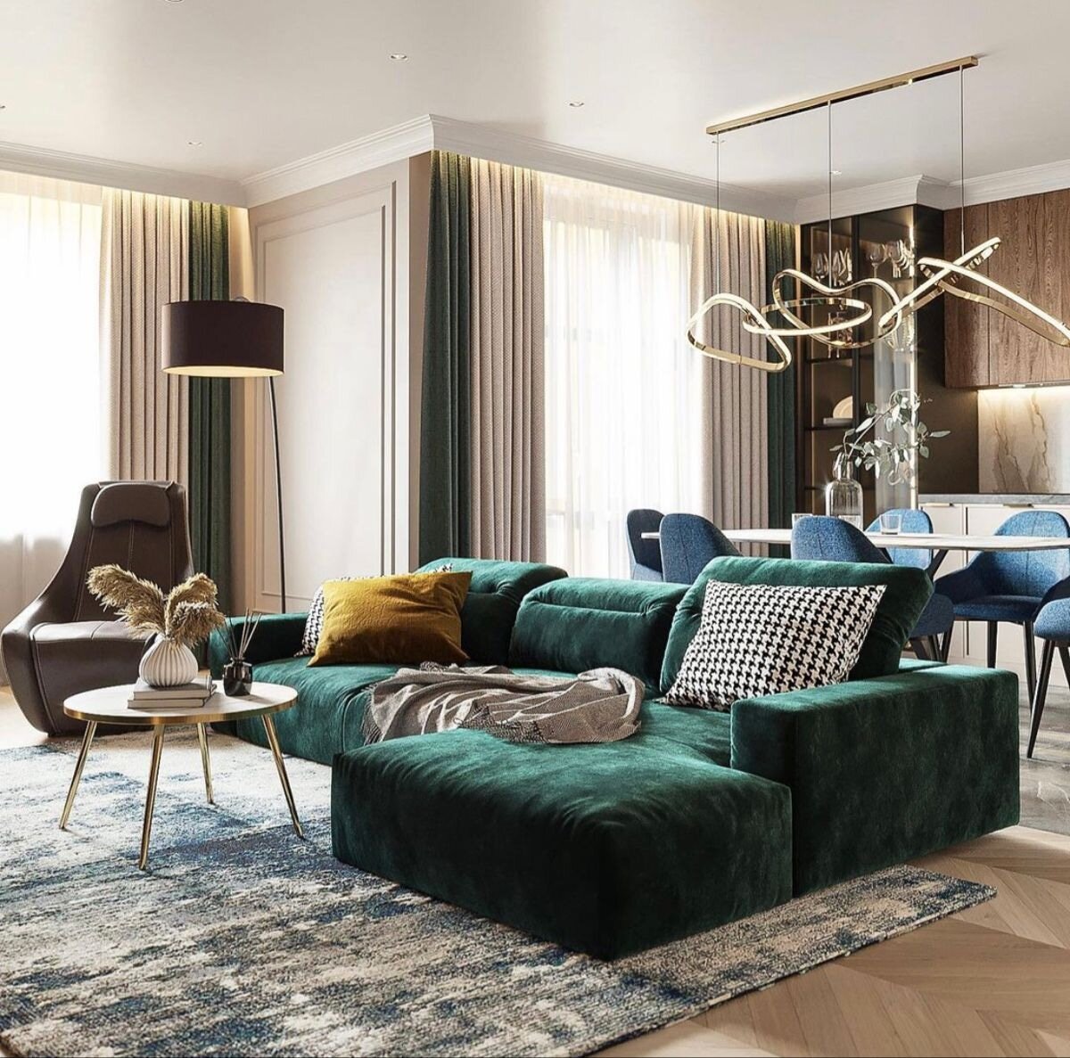 Еврогостиная - это кухня соединенная с гостиной при помощи перепланировки, но это относится уже к вторичному жилью. Сегодня, уже довольно много новостроек сдается с такой планировкой. Дизайн интерьера уже адаптировался под этот тренд и предлагает множество способов сделать красивый ремонт в вашей квартире. Поделюсь с вами самыми топовыми тенденциями дизайна еврогостиной: 🔹️ Судя по названию уже должно быть понятно, что приоритет отдается именно гостиной. А фасады кухни в свою очередь не должны бросаться в глаза и выбиваться из общей концепции. 🔹️Следующий тренд - это игра на контрастах. Таким способом функционал кухни уходит на второй план, а на первый выходит жилой интерьер. 🔹️Чтобы разгрузить пространство, некоторые дизайнеры предпочитают отказываться от верхнего ряда кухонных шкафов, либо заменяют на открытые полки. 🔹️Кухонные островки по-прежнему остаются актуальны, они вполне подойдут в качестве рабочей зоны и обеденного стола.