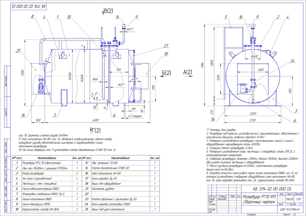 6. Габариты резервуара: диаметр 2100мм, длинна 3500мм, высота 2200мм