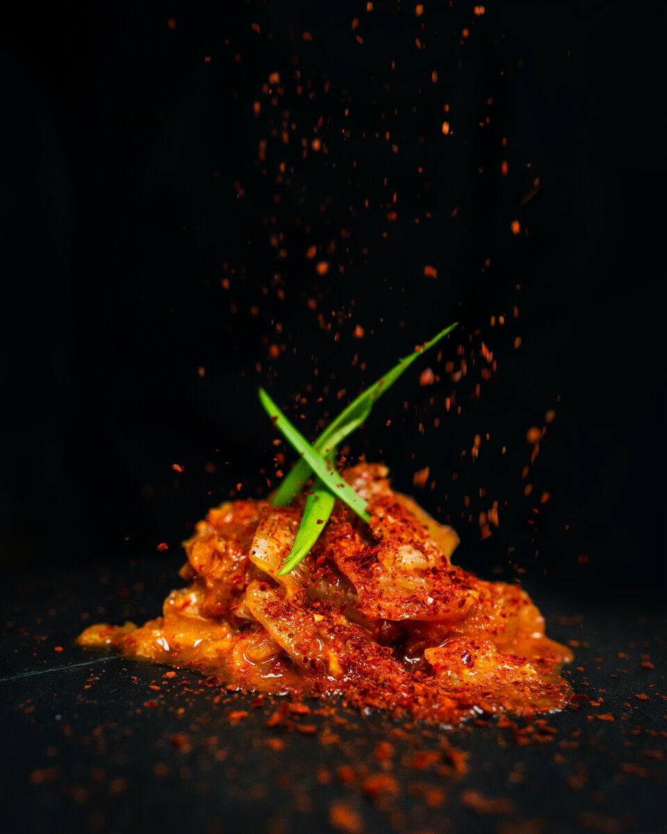 Кимчи считается национальным блюдом Кореи, а также становится все более популярным на Западе. Неудивительно: ферментированная пекинская капуста — это особый вид пикантного вкуса.С этим рецептом вы легко сможете приготовить кимчи самостоятельно. ингредиенты 1 кг пекинской капусты 3 л тростникового сахара 5 зубчик чеснока 5 см имбирь 4 шт зеленый лук 50 мл рыбного соуса 3 переца чили красный 3 л молотой паприки, сладкой 4 ложки соли 2 ложки кунжута 50 мл кленового сиропа УТИЛИТЫ Стерильные банки подготовка 1 Разрежьте пекинскую капусту вдоль на четыре части и нарежьте небольшими кусочками. Поместите листья в дуршлаг и промойте под проточной водой, затем слейте воду. 2 Поместите пекинскую капусту в неглубокую миску или форму для запекания, посыпьте солью и хорошо перемешайте. Оставьте на два часа, периодически помешивая. 3 Вскипятите сахар и кленовый сироп в маленькой кастрюле с 200 мл воды. Снимите кастрюлю с плиты и дайте остыть. 4 Чеснок очистить и выдавить через чеснокодавилку. Очист