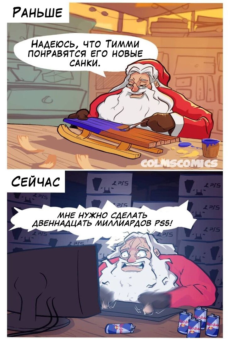 Ежегодно в ночь с 24 на 25 декабря во многих странах празднуется Рождество - речь, конечно же, про зарубежье. Уже несколько лет подряд специально к этой дате я подготавливаю подборку комиксов про главный символ католического Рождества - Санта-Клауса. Этот год, как вы могли догадаться, не стал исключением. Некоторые читатели могут задаться вопросом, почему я делаю статьи именно про Санта-Клауса, а не про Деда Мороза? Главная причина, конечно же в том, что комиксов про зарубежного праздничного дедушку в сети намного больше. У русских авторов, конечно, тоже много праздничных комиксов, то все равно несравнимо меньше, поэтому много комиксов про Деда Мороза бывает сложно найти. Но они, конечно же тоже будут, ведь это не последняя предпраздничная подборка. Ну а пока - немножко юмора о Санте. Серия Colmscomics от анонимного художника под псевдонимом Colms полна отсылок к современной поп-культуре. Ну а Санта-Клаус уже давно стал неотъемлемой части этой самой культуры: про него снимают кино, де