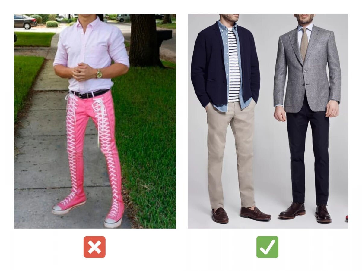 Несмотря на возросший общий уровень толерантности в обществе, всё равно не стоит приходить на встречу в рваных розовых джинсах и кедах на блестящей платформе. Такой внешний вид не всегда вызывает доверие и ведет к установлению контакта.