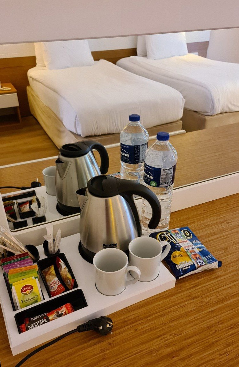 📍ALVA DONNA WORLD PALACE Кемер Зимой не работает, закрывается в середине ноября. Территория самая большая из всех 3 отелей ALVA DONNA, условно поделена на 2 зоны: релакс и активная. Красивый декоративный бассейн с водопадом, живут фламинго, лебеди. По номерам: Standard (2+1) без реновации, выглядят хорошо. Планируется р-ция в 22-23г. Доп. кровать евро раскладушка. В санузле ванна. Family duplex не реновированные с 2015г, выглядят хорошо, дизайн классический, ничего страшного не заметили. Минибар, сейф, тапочки, халаты (вафельные), косметика. Санузел с ванной на 1 этаже, 2 раковины, фен, тапочки, одна большая кровать. Наверх проходит узкая деревянная лестница, есть закрывающая от детей наверху калиточка. Небольшая спальня с окном и 2 кроватями, свой санузел с душевой кабинкой. . Suite более современные, с ремонтом. всего таких номеров 18 штук, все они идут с торца зданий, с прямым видом на море, на 1 на 2 и на 3 этаже, двухкомнатный, спальня и гостиная. В гостиной угловой див