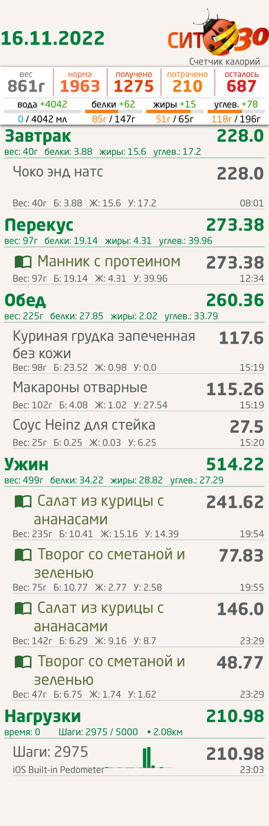 Ну как я и думала, отвеса нет. Привес есть. Бывает. Вес на 17.11.2022 - 128,6