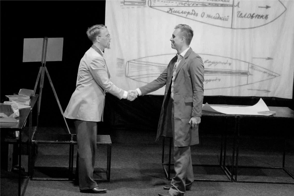 Театр «Переход» имени Геннадия Кириллова РГУ имени С.А. Есенина представляет премьерный спектакль «Циолковский. Через тернии к звёздам», приуроченный к 165-летию со дня рождения основоположника космонавтики. Постановка является совместным проектом театра с музеем Циолковского в селе Ижевское. В основу сюжета легли воспоминания Константина Эдуардовича о детстве, студенчестве, увлечении воздухоплаванием, семье. Образ человека, преданного своей идее и идущего к её реализации, несмотря на трудности и жертвы, открывает перед нами новые грани личности великого учёного. Зрителю предоставляется возможность взглянуть на биографию гения в современной театральной манере. «...Что сделала со мной глухота? Она заставила меня страдать, каждую минуту моей жизни, проведённую с людьми. Это углубило меня в самого себя, заставило искать великих дел. Она стала моим кнутом, который гнал меня. Без неё я никогда бы не закончил столько работ», – именно с этими словами на сцене появляется Роман Кудяков в роли