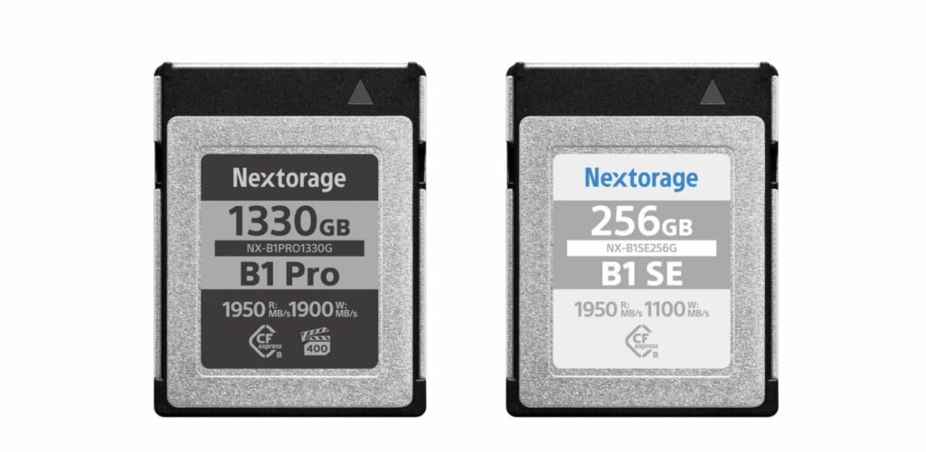 Компания Nextorage представила высокоскоростные карты-памяти CFexpress Type B двух линеек: B1 Pro и B1 SE. Версия Nextorage B1 Pro имеет скорость записи до 1900 МБ/с и скорость чтения — до 1950 МБ/с. Данные карты-памяти (версия B1 Pro) имеет заявленный рейтинг VPG 400, и выпускается с объемом памяти от 165 до 1330 ГБ. Карта-памяти версии B1 Pro предназначена для операторов и съемки видео, а версии B1 SE больше подходит для профессиональных фотографов, использующих современные цифровые фотоаппараты. Тем не менее, накопители имеют ряд схожих черт: термостойкость от -10 ℃ до 70 ℃, ударопрочность в соответствии со стандартом EIA-364-27A, устойчивость к рентгеновскому излучению и ультрафиолетовому излучению и магнитостойкость. Обе карты-памяти поддерживают интерфейс PCIe 3.0 NVMe 1.4. Обе линейки новых карт-памяти Nextorage поддерживают последние высокотехнологичные полнокадровые камеры, способные вести запись видео с высоким битрейтом: Canon EOS R3/R5/R5C и Nikon Z9 и другие. В настоящий м