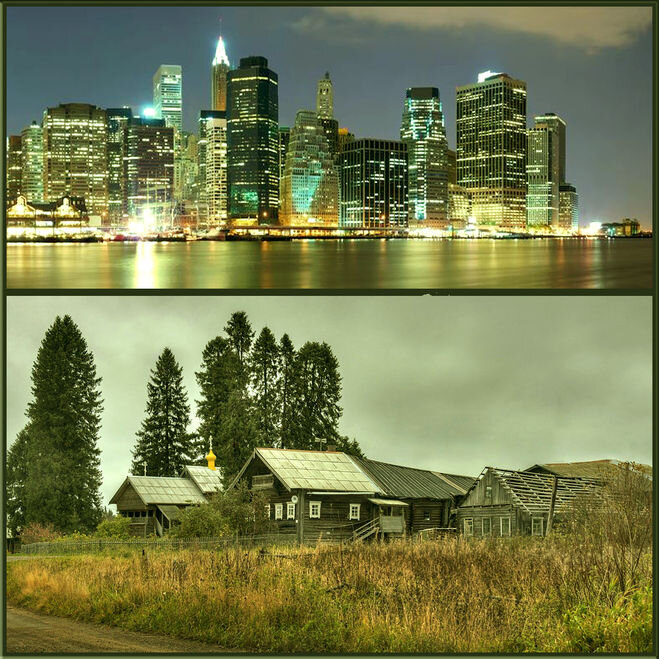 Сходства между городом и селом намного меньше. Различий больше, и это неудивительно. Не нужно даже детально рассматривать эти населенные пункты.