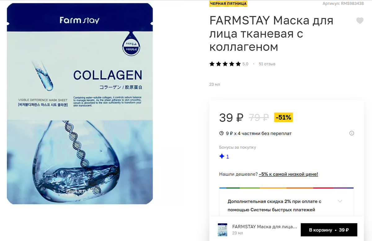 1. Огромное количество корейских тканевых масок по 39-49р.