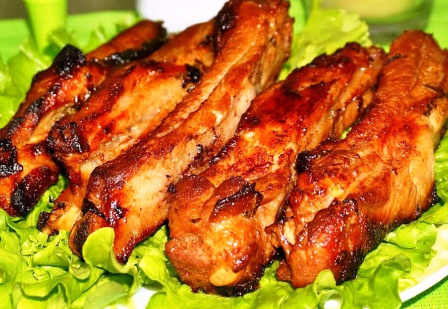 Продукты: Свиные рёбра – 2 кг. Чеснок гранулированный – 3 ст. ложки. Паприка сладкая молотая – 1 ст. ложка. Горчичный порошок – 2 ч. ложки. Сахар – 1 ст. ложка. Соль – 2 ст. ложки. Соус барбекю – примерно 1-2 ст. ложки Пошаговый рецепт: Свиные рёбрышки в духовке под соусом барбекю Приготовление начинаем с рёбер. Необходимо снять пленочку с их внутренней стороны. На мой взгляд, проще всего это сделать, поддев её обратной стороной чайной ложки. Затем просто берёмся за край плёночки и снимаем её руками. Удалив плёночки с внутренних частей рёбер, мы сделаем готовое блюдо, во-первых, нежнее, а во-вторых, специи лучше проникнут внутрь мяса. Вместе с плёночками удаляем излишки жира, если таковые имеются на свиных рёбрах, которые Вы приобрели.
