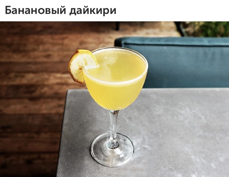 Метод – шейк, посуда – бокал купе, гарнир – слайс банана.