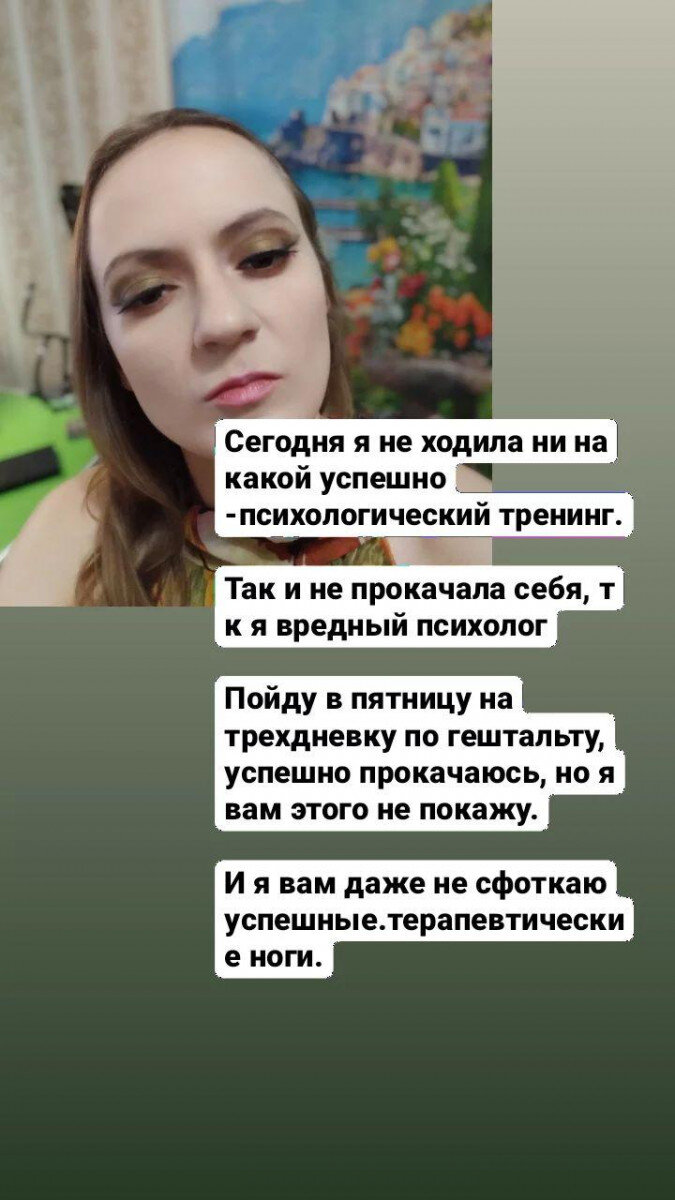Я НЕНАВИЖУ ИНСТАГРАМ Хочу поразмышлять на тему продвижения психолога в запрещенной соц сети. Я недавно выкладывала стёбные сторис в моем психологическом аккаунте. Я чувствовала себя подростком, который злобно подшучивает. Но над чем же я шутила? Если опираться на мои чувства - у меня огромное нежелание продвигаться таким способом. Подкатывает чувство тошноты. Разочарована, если я выкладываю себя настоящую - неидельные фото, видео, или картинка, на котором нет моего лица, но при этом мои статьи интересные, Инста не продвигает такое. И когда думаю, что мне нужно, что бы пришли клиенты - сходить на фотосессию , выложить идеальный завтрак, и ноги идеальных коллег - мне противно! Запрещенная соц сеть любит идеальных , всегда успешных, т е не живых людей. Добавлю, Я чувствую себя шизоидной, очень не люблю показывать свою жизнь. Действительно, т к учусь на второй ступени МГИ, посещаю много тренингов, проработок, групп. Но не хочу это показывать. Мне подходяще - писать и выкладывать статьи, ин
