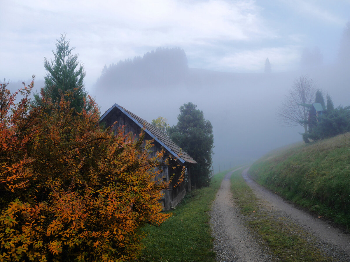 Даже грачи не галдят и не летают. Мух и тех нет. И комаров, которые там доставали. Только туман кругом. Видеть можно, но недалеко.