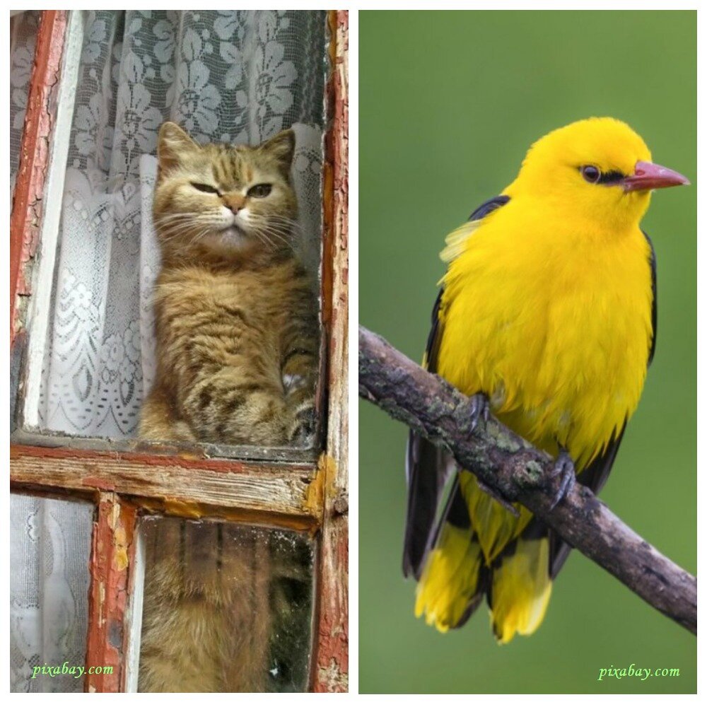 Дерево было густое, но кот все-таки разглядел на нем желтую птичку.
