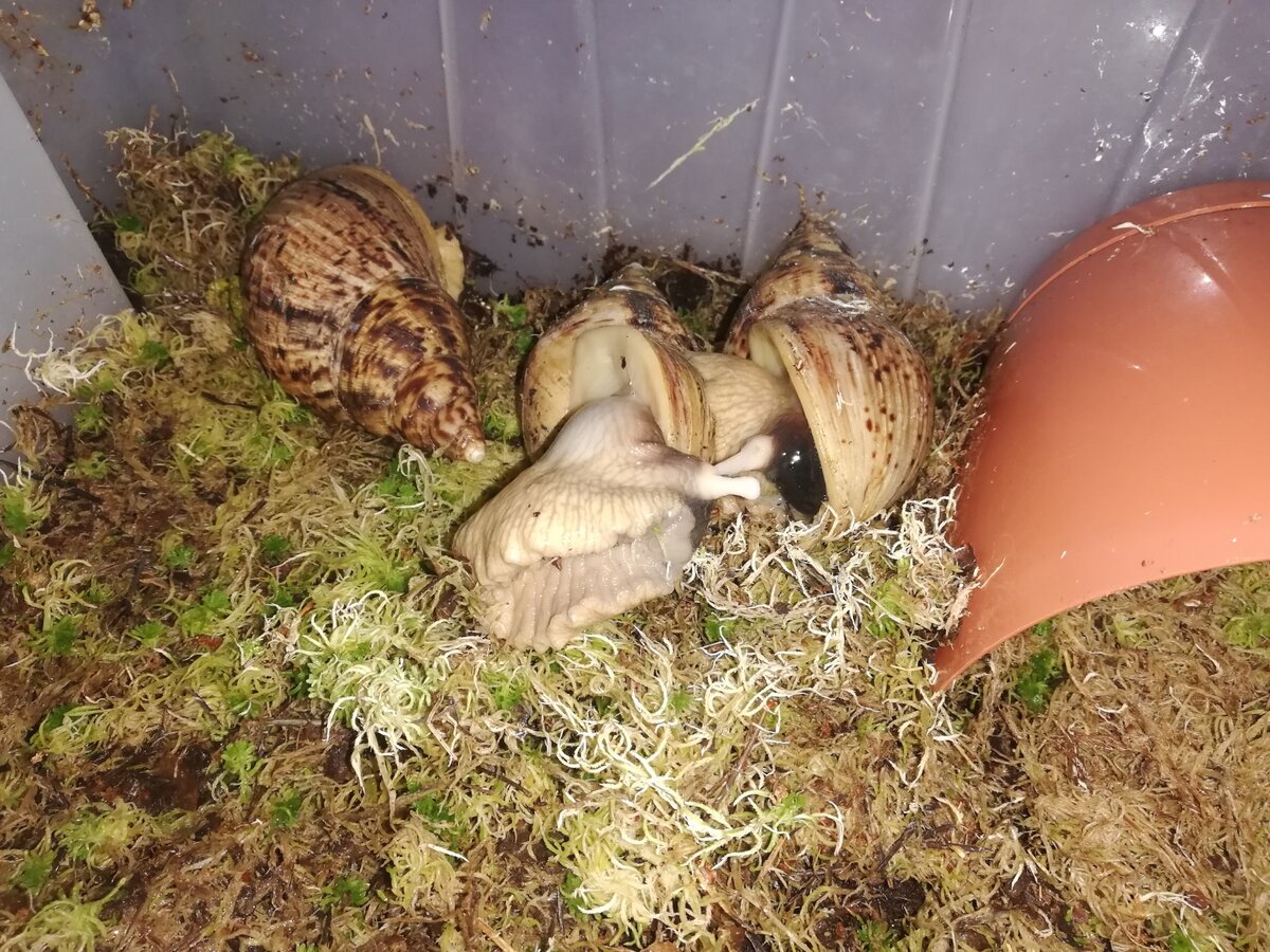 Чёрные тигровые Ахатины неожиданно, для меня, начали давать потомство