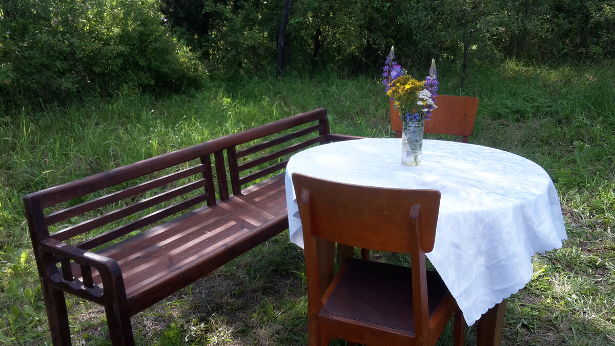 Да, работы по домику проводятся ооочень медленно. Но на это есть много причин. Поэтому не паникую и получаю удовольствие от того, что есть. Летом был хороший урожай не только на огороде, но и получился хороший "урожай" мебели. Благодаря хорошим друзьям, в доме появился круглый! стол, стулья и скамья. Мебель старинная и некоторая даже самодельная. Также две кровати. Друзья мне помогли не только с мебелью, но ещё и с чисткой потолка. Потолок был в ужасном состоянии. Точнее краска на нём. Сами доски хорошие. Поэтому было решено снять старую краску и покрасить в белый. Снимала горячим феном. Процесс это трудоёмкий и не быстрый. Но справились. Так что теперь у меня беленький глянцевый потолок, как и хотела. Было Стало