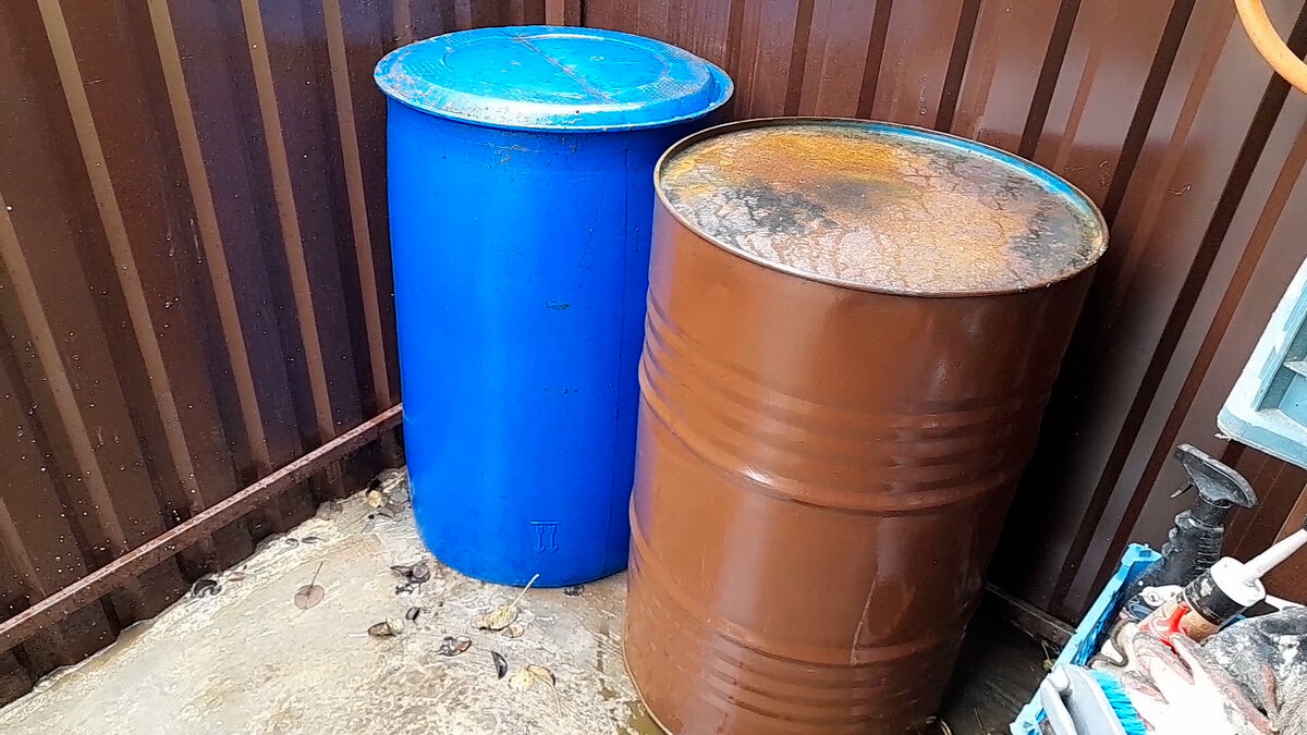 Без бочек на дачном участке не обойтись. Особенно когда вода подается всего два раза в неделю, в один из которых она идет 20 мин, а в другой 40 мин. Не наберешь, нечем будет поливать. Кроме того, в бочки мы собираем дождевую воду с крыш. У нас есть как пластиковые, так и металлические бочки. Синие пластиковые стоят в укромных местах и не раздражают глаз своим неуместным цветом. А на видных местах у нас бочки из металла, окрашенные коричневой краской в цвет построек. На зиму воду из этих бочек мы сливаем. Часть бочек переворачиваем и уносим под навес. Маленькие бочки заносим в теплицу. В них мы зимой накидываем снег для полива рассады. Есть у нас еще две большие самодельные бочки, которые достались нам с участком. Одна из них вкопана в землю. Вкопали ее предыдущие владельцы дачи во времена воровства. Пользоваться этой бочкой очень неудобно, но держим ее с водой как резервную. На зиму не сливаем. Используем воду лишь во времена весенней стройки для приготовления бетона и во времена си
