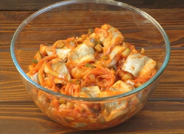 В наших домах никогда Новый год и Рождество не обходятся без селедки. Для нее всегда есть место на столе. Помимо четырех польских рецептов салата из селедки, о которых я писала раньше, я вспомнила еще один замечательный рецепт вильнюсской сельди, или селедки, маринованной по-вильнюсски. Уверена, что этот рецепт не оставит хозяек равнодушными. Готовить ее надо заранее, так как самой вкусной она будет через 2—3 дня после приготовления. Рекомендую этот рецепт на предстоящие праздники. Из приведенных ингредиентов у меня получилось две 750-граммовые банки селедки. Острый кетчуп в рецепте можно заменить мягким, если вы так предпочитаете. Перед готовкой филе сельди следует вымочить в холодной воде, пару раз сменив ее. Я вымачивала около 2 часов, но в любом случае, надо не менее часа. За это время я сменила воду 3 раза. Каждый раз, меняя воду, попробуйте селедку — возможно, она уже достаточно потеряла соли на ваш вкус. Также иногда сельдь вымачивают в молоке. Вынув филе из воды, хорошенько про