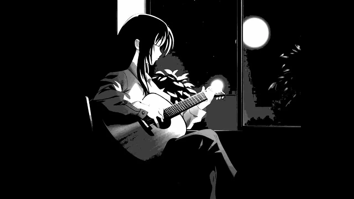 Она сидела на подоконнике своего окна, в руках держала гитару. Ее голова была склонена над грифом и она, кажется, пыталась извлечь из инструмента звуки. В открытую форточку вырывались время от времени стоны несчастного инструмента и робкие попытки наложить на эту, с позволения сказать, музыку какой-то не очень складный текст.