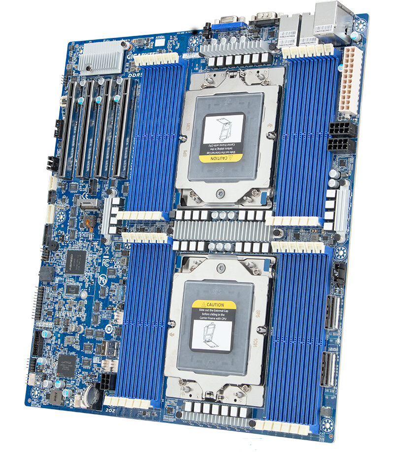 Также представлены несколько материнских плат для Genoa, в частности, модели MZ73-LM0 и MZ33-AR0. Первая из этих новинок рассчитана на два процессора. Допускается установка 24 модулей оперативной памяти DDR5-4800 и четырёх карт расширения PCIe 5.0 x16. Присутствуют разъём SlimSAS 4i (4 × SATA 3.0) и два коннектора MCIO 8i (4 × NVMe или 16 × SATA), два порта 10GbE (Broadcom BCM57416) и выделенный сетевой порт управления (ASPEED AST2600), слот M.2 для SSD 2280/22110, два порта USB 3.2 Gen1, последовательный порт, разъём D-Sub.