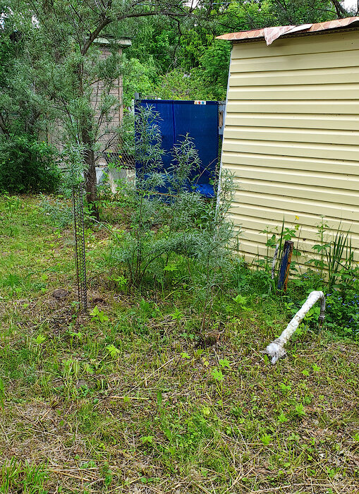 Потихонечку избавляемся от молодой поросли облепихи. Оказалось, что нет ничего проще, чем от нее избавиться. Единственное, это корни. Они ползут по всему участку. Пришлось повозиться с корнями от спиленных деревьев облепихи и яблони. Всего в общей сложности выкопал 6 пней. Корни хоть и не глубоко уходят в землю, но достаточно широко. Что-то обрубал, что-то вырывал на максимальное расстояние. Прошлая хозяйка оставила нам подарочек :) Это 3 столба, которые были вкопаны и забетонированы. На них она планировала разместить брус, для навеса. Но нам они совершенно не нужны. Пришлось тоже выкапывать. На одном столбе прям реально застыл бетон, а 2 других, как будто были гипсом залиты, пришлось выгребать камни. В общем работа по устранению у дома поросли облепихи и столбов закончена, посмотрите, что получилось.