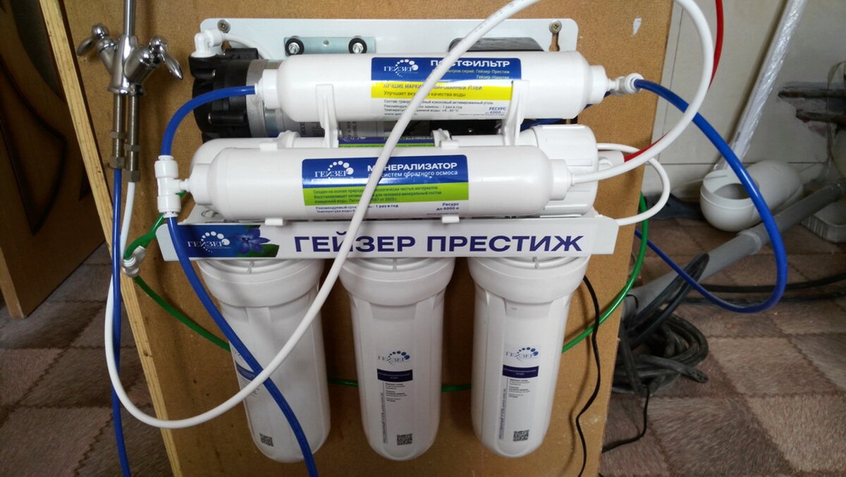 Выбор пал на Гейзер Престиж ПМ. Просто на него была более-менее адекватная цена. Покупался в 2019 году за 11500 вечнодеревянных. Вот две последние буквы в названии- это некая опциональность данного фильтра- комплектация, говоря языком автомобильного рынка, где П- насос повышения давления, а М- наличие минерализатора, который делает водичку повкусней и пополезней после обратноосматической мембраны. Вот буква М никак радикально не меняет стоимость фильтра, а вот буква П добавляет к стоимости изрядную сумму. В связи с низким давлением со скважины за букву А мне пришлось переплатить. Какой-то отзыв писать, на то какого качества вода получается, лишено всякого смысла, после любого обратного осмоса вода абсолютно одинаковая. На вкусовые качества будет влиять только то воздействие, которое окажется на воду после мембраны. В Престиже после мембраны установлен блок кондиционирования и минерализации. Вода получается хорошая, приятная на вкус. Вот без лишнего задротства...вода как вода. Но вот к конструктиву доколупаться считаю необходимым.