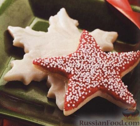 Сливочное печенье (морская звезда) Продукты Взбейте миксером масло (маргарин), сливочный сыр и сахар до пышной массы. Вбейте яйцо и ваниль. Смешайте просеянную муку и соль. Понемногу добавляя муку в масляную смесь, перемешайте тесто до однородности. Накройте и поместите в холодильник на 1-2 часа. На посыпанной мукой поверхности раскатайте из теста пласт толщиной 0,3-0,4 мм. Вырезайте печенье специальными формочками (обмакивайте край формочки в муке). Выкладывайте печенье на противень (смазывать не нужно) на расстоянии 2-3 см (печенья получается много - больше 80 штук). Выпекайте сливочное печенье при температуре 190 градусов в течение 7-8 минут, чтобы края печенья слегка подрумянились. Оставьте на 1 минуту и затем выкладывайте печенье на решетку, чтобы полностью его остудить. Взбейте миксером ингредиенты глазури. Если хотите, добавьте краситель. Покройте глазурью остывшее сливочное печенье.