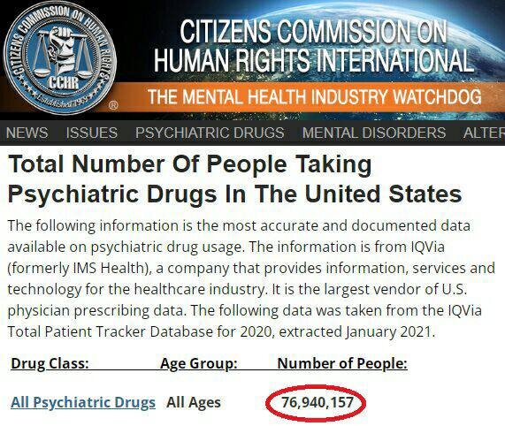 77 миллионов американцев сидят на таблетках, прописанных психиатрами. Это больше, чем половина населения России. Статистику приводит фармацевтическая компания IQVia (крупнейший поставщик рецептурных медикаментов по психиатрии в США). Данные за 2020 год. Больше всего препаратов принимают люди в возрасте 25-44 лет (20 млн), 45-64 лет (25 млн) и 65+ лет (19 млн).