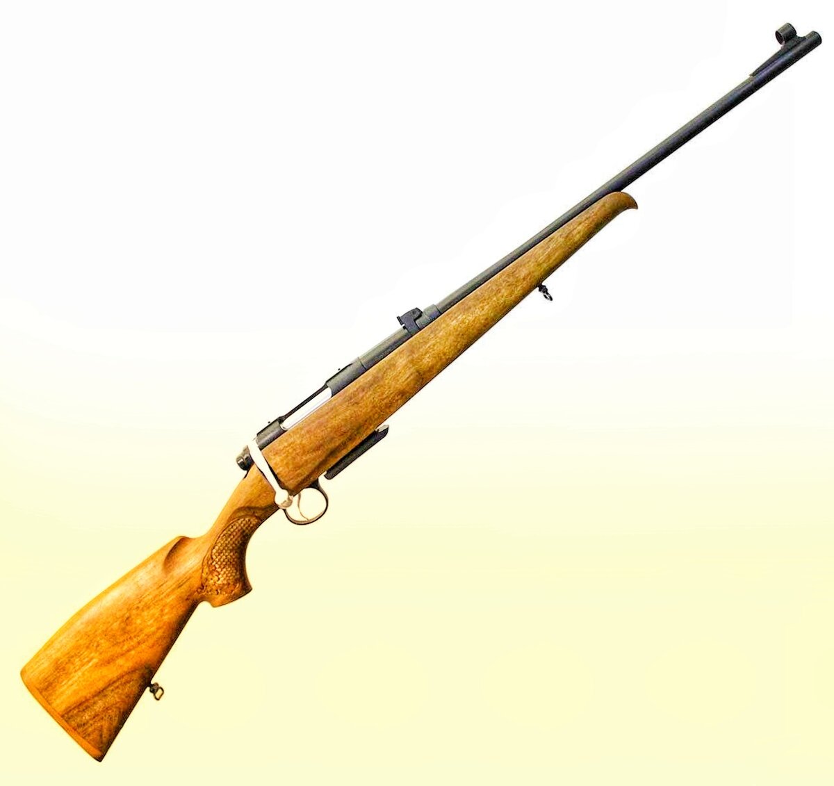 В 1960 г. под этот патрон был разработан карабин КО-5,6-60 «Барс-1». Несколько лет он испытывался в заводских условиях и в различных при- родных и климатических зонах страны. После приёмочных испытаний на государственной испытательной станции, <<Барс-1» в 1967 г. был запущен в серийное производство на ПО Ижмаш и с небольшими изменениями производится до настоящего времени. Предназначен для охоты на некрупных зверей: лисицу,сайгака,косулю, волка, кабаргу, сурка патроном с полуоболочечной пулей. С патроном, имеющим обо- лочечную пулю, можно охотиться на животных мень- ших размеров. Длина карабина-1044 мм; ствола 600 мм; прицельной линии 490 мм. В канале ствола шесть правых нарезов, шаг нарезов 420 мм. Канал ствола и патронник хромированы. Соединение ство- ла с коробкой на резьбе. На стволе прямоугольная мушка и целик барабанного типа с делениями 100, 200, 300 м. Между вторым и третьим имеется деление на 250 м. На карабин может быть установлен оптический прицел ТО-4 или по-4х34 (четырехк