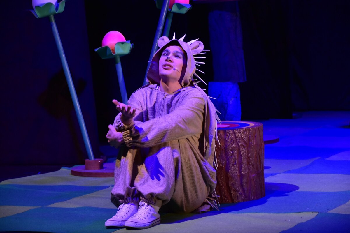 У каждого из нас был период «гадкого утёнка», когда любые наши особенности воспринимались как недостатки, а мнение сверстников становилось решающим. Детский спектакль «Не ёжик», премьера которого состоялась в Театре юного зрителя «Дилижанс», именно о непростом времени принятия себя. Режиссёр постановки Анна Башенкова и художник Алина Алимова не первый раз проявили себя на тольяттинской сцене. Летом этого года они представляли эскиз постановки «Не ёжик» в рамках театрального фестиваля «Премьера одной репетиции». Его тема обозначалась как «Режиссёр + Художник», но формат фестиваля предполагал использование минимальных затрат при постановке конкурсной работы, поэтому декорации были представлены в виде макета. Ограничений в премьерной версии уже не было. Художник воплотила свои замыслы в полной мере. Сцена предстала перед зрителями яркой и наполненной декорациями. Здесь деревья — пеньки разных цветов, наложенные друг на друга, мягкий пол, как и в игровых детских комнатах, хотя место действ