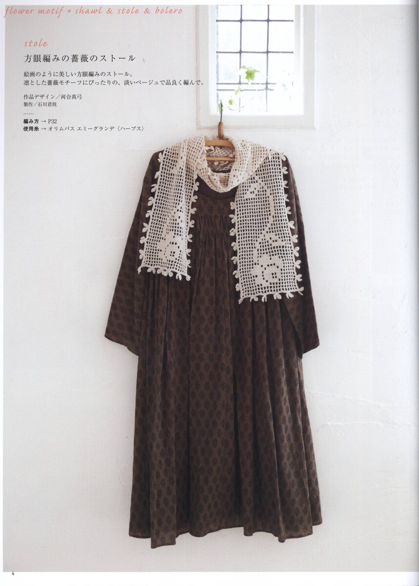 Филейное вязание крючком. Шарф с цветочным мотивом.