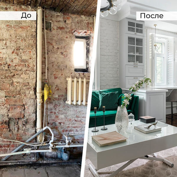 Разглядываем чужие переделки, чтобы решиться на свои! Мы всегда завидуем смелым решениям. Вот, кажется, все, решила, хочу розовую стену. А потом начинают грызть сомнения: а вдруг надоест, а вдруг не понравится, а что скажет муж, а не засмеют ли подруги? Смотрим, как делают ремонт другие, чтобы вдохновиться на смелые шаги. Белая квартира с камином и зеленым диваном Дизайнер: Kapitalno.pro. Было: общага рабочих Невской заставы, без ванной комнаты. Ребята из Kapitalno.pro очень много работают с квартирами из старого фонда. И это я сейчас не о хрущевках. Контора базируется в Санкт-Петербурге, так что к ним в руки попадают пространства, построенные сто и даже двести лет назад. На картинках «до» — часть общежития рабочих, с печным отоплением, полами прямо по земле и без малейшего намека на ванную комнату. После переделки получилась изящная сканди-квартира, в которой сохранили кирпичную кладку, добавили молдинги «в тему», а печь превратили в стильный цилиндрический камин. Посмотрите, как клас
