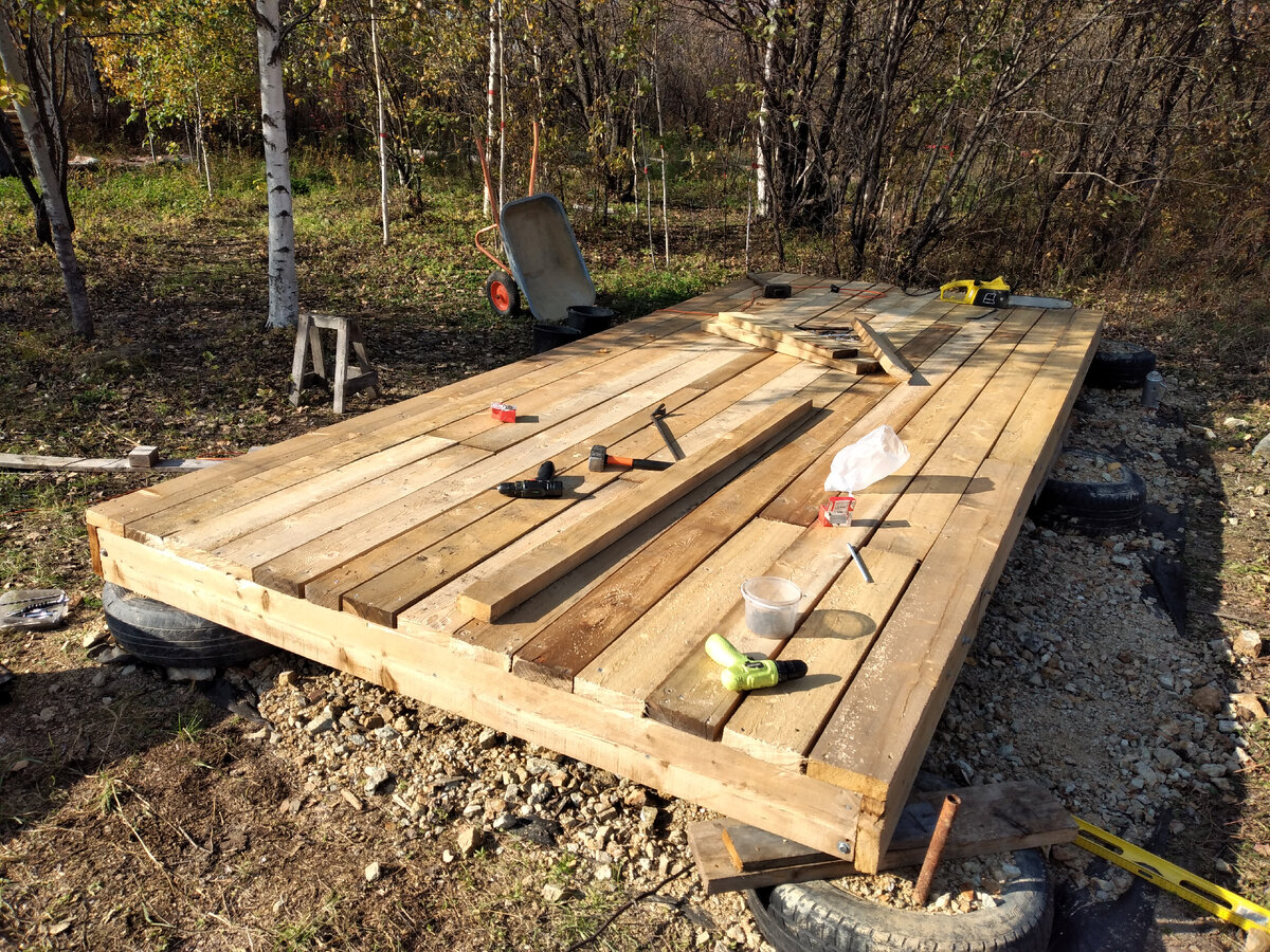 В общем закончил я строительство каркаса своей мини-бани. Размеры 2,2 х 5 метров. Как я делал основание и каркас стен я уже описывал. Для крыши я собирал треугольные конструкции, закидывать их на стены и там закреплял. В общем то ничего трудного, главное все правильно измерить и разместить, правда каркас стен проще- там все параллельно и перпендикулярно. Весь каркас из лиственницы кроме стропил - они из ёлки. Дальше запланирована обшивка ветрозащитой По стоимости каркас мне обошёлся вместе с крепежом около 30 0000 рублей