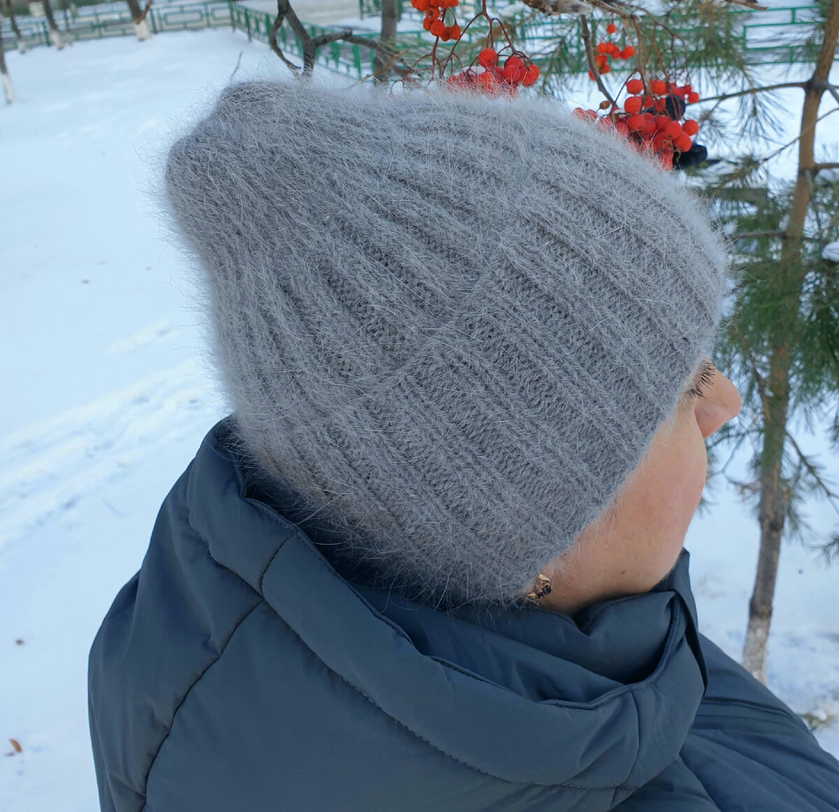 Шапка связана в 2 нити, спицы 4мм в процессе мне захотелось связать такую же модель но в 3 нити, думаю она будет смотреться лучше и теплее.