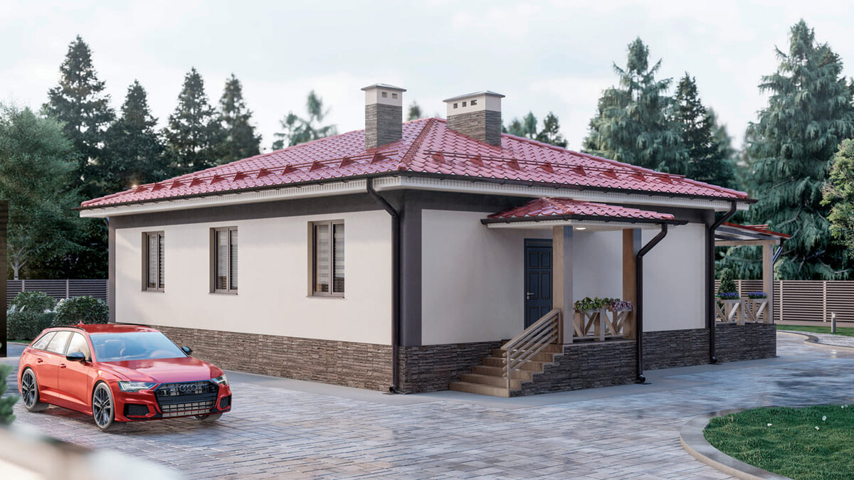 Эта планировка дома идеально подойдет для комфортной жизни семьи с двумя детьми.