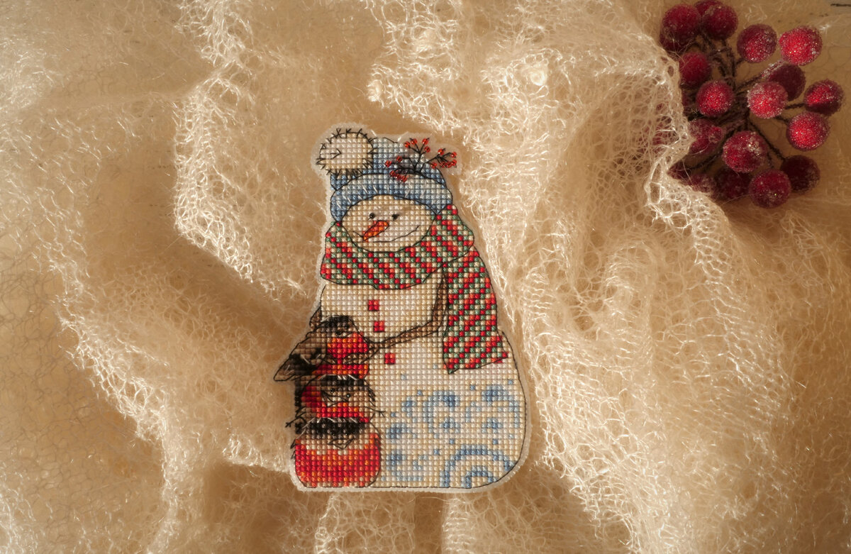 С конца октября не могу остановиться и вышиваю снеговиков без остановки! Готово уже 3 и 4ый в процессе, но покажу пока только одного ( в Питере хмуро и особо развернешься по фото ) Знакомьтесь, Снегирёв! Очаровательный товарищ! Строит снеговика из снегирей ) А они такие пухленькие и милые ) Невозможно было удержаться! Процесс на 2500 Х, в работе использовались 16 цветов дмс и 1 бленд из них. Фрузелки заменила на бисер из запасов. Вышивала на прозрачном пластике. Автор схемы Людмила Ойнонен. https://vk.com/ludmoin