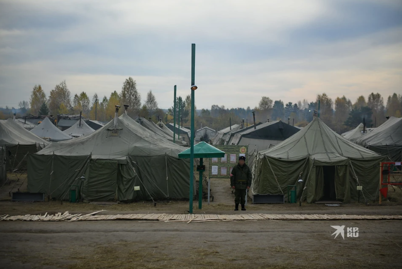 Мы уже на территории одной из частей. Стоим прямо перед палаточным городком для мобилизованных. Его поставили на территории, зарезервированной для сборов, чтобы разместить часть личного состава. Часть людей разместили в казармах.