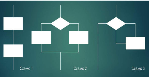 В линейной схеме первый блок описывает действие, за которым идет следующий и так далее.