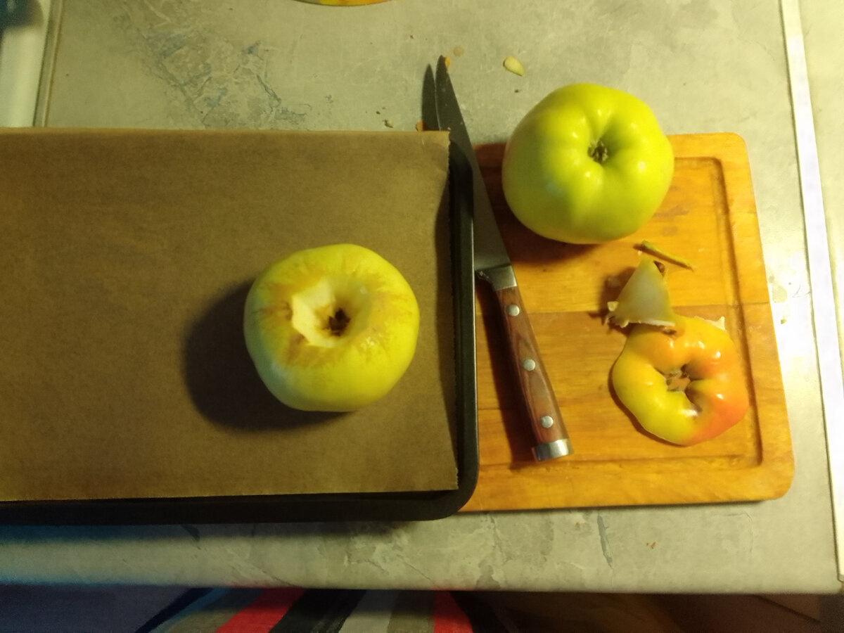 Этот рецепт известен каждой хозяйке. И каждая пытается его делать по-своему. В старой кулинарной книге у мамы было аж 15! вариантов рецептов печеных яблок. В детстве, помню, не было вкуснее блюда у бабушки осенью. Она всегда запекала яблоки в русской печи. Причём ставила их туда на большой чугунной сковороде после того, как печь заканчивала топиться и начинала просто отдавать жар в помещение. Это было сказочное время. В маленькой комнатке на два окошка печь занимала всю стену и возвышалась, как мне тогда казалось, до потолка. Лампада у иконостаса в переднем углу, где осенью бабушка выкладывала яркие фонарики физалиса и кисти рябины. Шум говорливого самовара, который растапливался щепками и шишками. И запах. Запах ароматной пшённой каши, варёной в мундире картошки и печёных яблок, томящихся в печи. У нас на участке даже была специальная яблоня, дававшая некрупные, но очень крепенькие яблоки похожие на знаменитую Антоновку. Дед говорил, что это Антоновка, привитая на дичок. Вот уж не зн