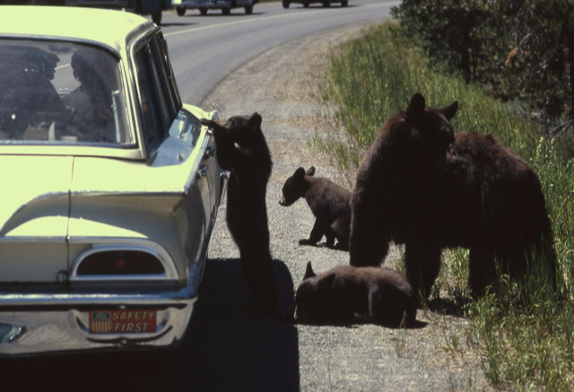 Невероятные фотографии туристов, кормящих медведей из машины в Йеллоустонском национальном парке с 1940-х по 1960-е годы