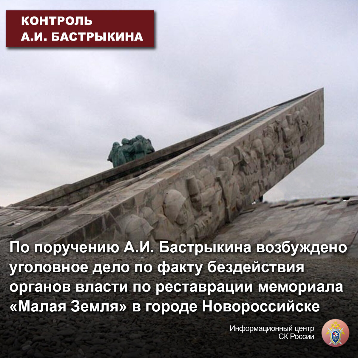 По поручению А.И. Бастрыкина возбуждено уголовное дело по факту бездействия органов власти по реставрации мемориала «Малая Земля» в городе Новороссийске