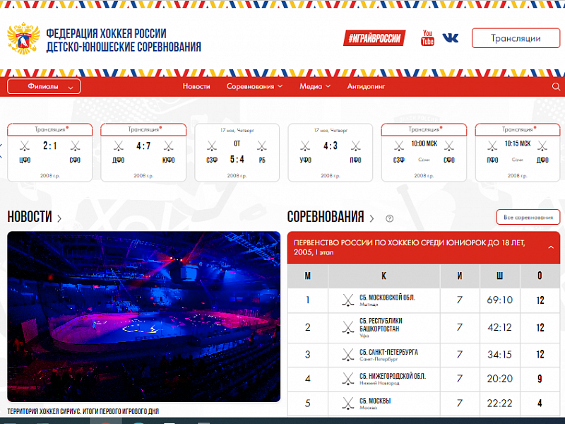 Детско-юношеский хоккей всегда был и остается одним из важнейших направлений работы Федерации хоккея России, поскольку от него напрямую зависит будущее развитие нашего вида спорта в стране. С нынешнего сезона ФХР начала реализацию комплекса мер, направленных на привлечения максимального внимания к детско-юношескому хоккею. И первой из этих мер стал запуск интернет-ресурса junior.fhr.ru, на котором будет собрана вся информация о детско-юношеских соревнованиях в Российской Федерации. Новости, результаты, прямые трансляции – всё это можно найти на нашем портале, который будет постоянно обновляться, представляя новые возможности тем, кто хочет находиться в курсе важнейших событий. Запуск портала junior.fhr.ru – лишь один из многих шагов, которые предпринимает ФХР в этом направлении. Еще одним таким шагом стал запуск бренда «Территория хоккея», под которым отныне будет проводиться Первенство федеральных округов. Всё это является частью полномасштабной стратегии комплексного развития детских