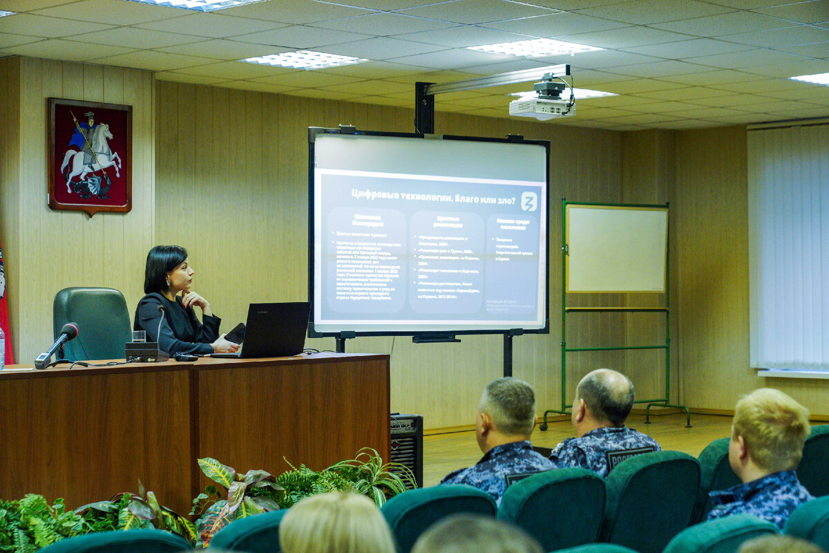 В Центре профессиональной подготовки сотрудников вневедомственной охраны имени Героя Советского Союза С.Х. Зайцева Главного управления Росгвардии по городу Москве телеведущая и журналист Ирина Россиус выступила перед росгвардейцами с актуальной темой «Современная информационная война и фейк ньюс». Ирина Россиус сказала, что современные цифровые технологии значительно облегчили сбор, обработку и передачу огромных объемов информации из разных источников. Но зачастую новые технологии находят применение при создании фейковых новостей - заведомо ложных «новостных» сюжетов, намеренно распространяемых через средства массовой информации с целью дезинформации граждан, оказания влияния на политические и экономические процессы, для ведения информационных войн. Телеведущая отметила, что против России ведется война с широким фронтом. И помимо прямого столкновения, существует экономическое, информационное и цифрологическое противостояние. Главной целью является дестабилизация ситуации среди населени
