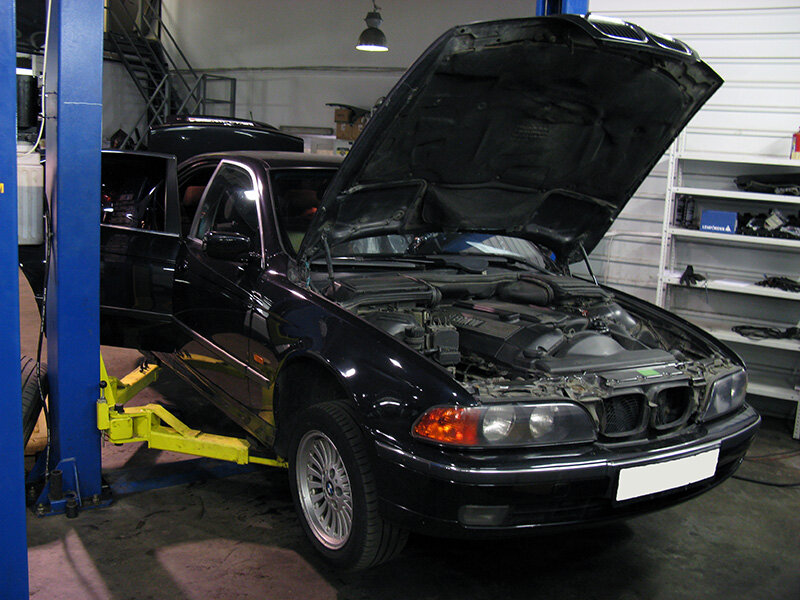 Сегодня расскажем о ремонте АКПП BMW е39 1998 года 2.3 литров АКПП, с пробегом 150 тысяч километров. Эту модель публика впервые увидела 1995 году во Франкфурте. БМВ Е39 пришел на замену БМВ Е34. Е39 считается одной из лучших моделей в бизнес-классе. К такому мнению пришли эксперты и бывшие владельцы автомобилей. Они отметили мощный двигатель, отличное управление и прекрасный дизайн. Судить о качестве автомобиля можно по тому, что он до сих пор не потерял актуальность и пользуется огромным спросом среди потребителей, хотя выпускали их четверть века назад. Я первую очередь хочу отметить полную безопасность авто. Он оснащен 6 подушками безопасности. Полный электропакет: всех зеркал, гидроусилитель руля, блютуз, климат контроль, обогрев сидений. Мотор М52 со 150 лошадиными силами надёжный и неприхотливый. Алюминиевые подвески могут "подруливать" задние колеса. Производители решили уменьшить вес автомобиля, для лучшей управляемости. Аккумулятор поместили в багажник, и распределили вес по вс