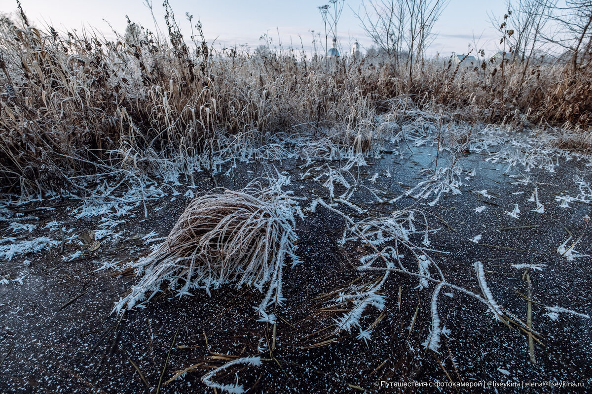 И пока иней не растаял, эту красоту надо ловить. Поэтому я быстренько изменила маршрут и решила заглянуть на берег речки Клязьмы.