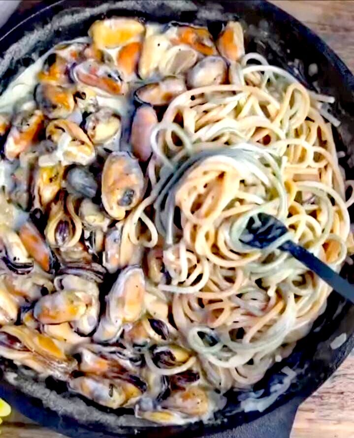 Мидии в сливочном соусе. Просто, быстро, вкусно. (0.5 ХЕ на 100г).