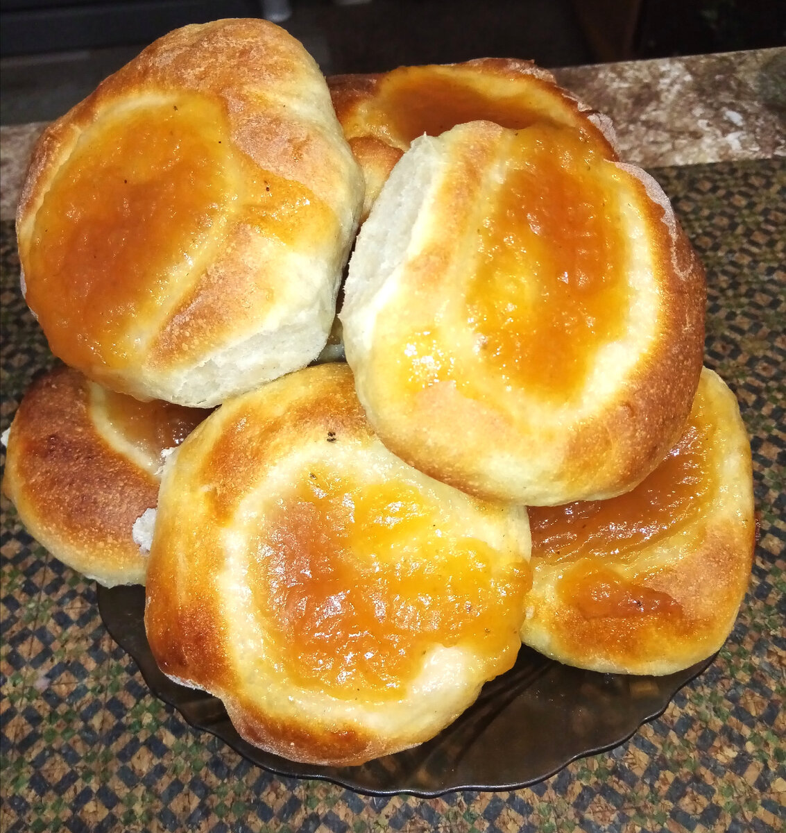 Продукты (на 12 порций) Мука - 4 стакана Дрожжи живые 20 гр. Молоко тёплое (не выше 35-40 градусов) или вода теплая - 1,5 стакана Сахар - 1 ст. ложка для теста Соль - 1 ч. ложка Ванилин Масло сливочное - 100гр. ст. Стакан варенья. Яйцо или молоко для смазывания плюшек. Заводим мягкое тесто, оставляем в тёплом месте на 40-60 минут. Достаём тесто, делим на 12 кусочков, скатываем шарики и оставляем на расстойку. Как вырастут так в середине каждой булочки делаем углубление дном стакана, наливаем любое варенье. Смазываем молоком или яйцом. Ставим в разогретую до 200 градусов духовку, Выпекаем 16 минут. Приятного аппетита 🥰 Пушистое тесто, как в детстве и сладкая начинка.