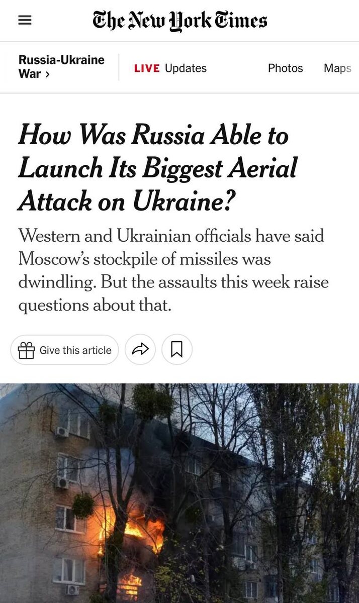 Как пишет New York Times, украинские и западные оценки относительно того, что запасы российских ракет истощились, были поставлены под сомнение. По оценке издания, России удалось создать запас импортных комплектующих, который позволяет сохранять производство ракет «Калибр». Показательно, что в качестве иллюстрации приводится фотография дома, в который попала украинская зенитная управляемая ракета Наш телеграмм канал - тут Новости в Дзен - тут