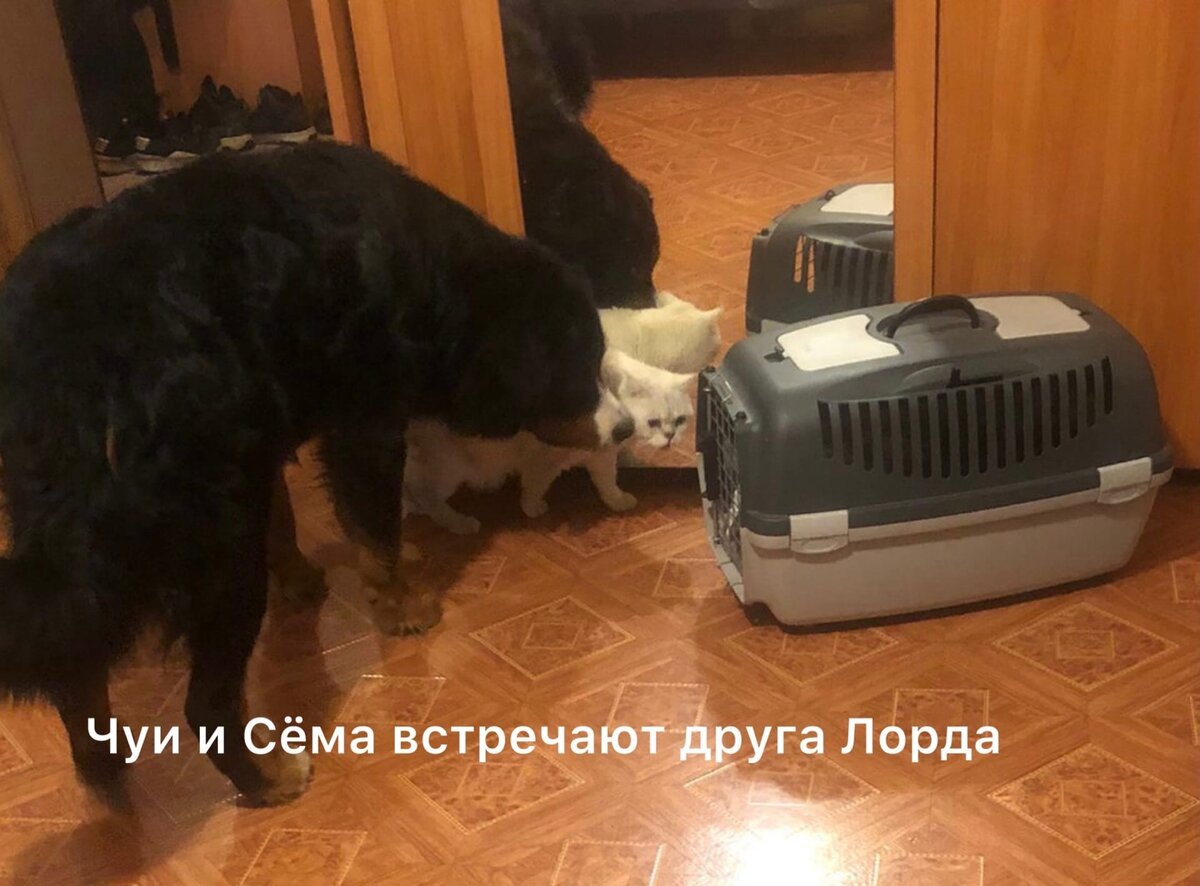 Теперь у Айвенго другое имя, он теперь Лорд! А новые друзья - это пес Чуи породы бернский зенненхунд, ему 1 год, и котик-британец Сёма, он там главный, потому что ему аж 4 года!