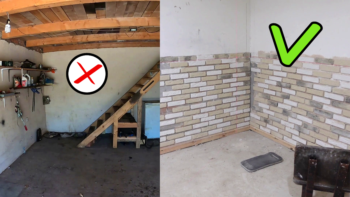 Новый вид гаража! Укладка гипсового камня. Ремонт своими руками.