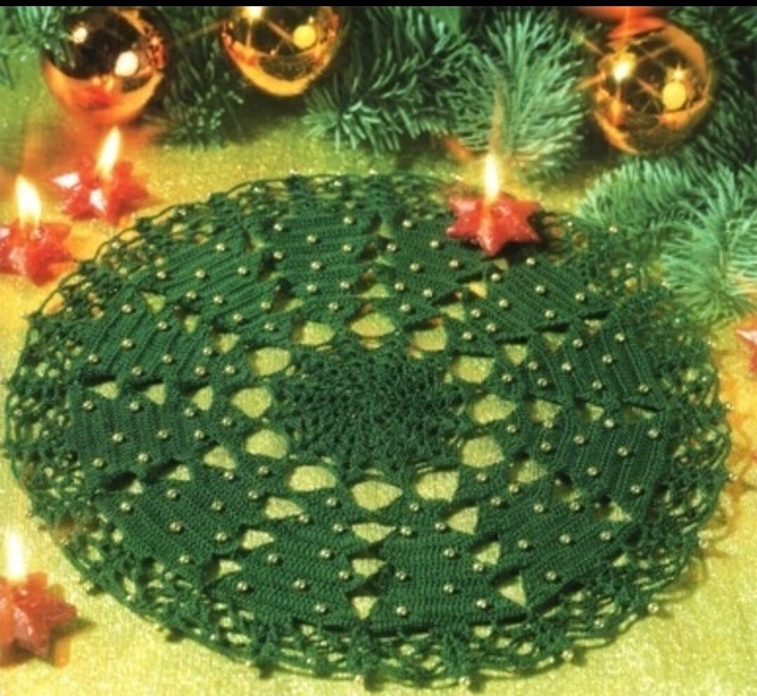Приветствую вас, дорогие мои подписчи и гости моего канала! Продолжаем новогодний марафон. Сегодня я предлагаю вам связать тематическую салфетку "Ёлки". Этот мастер-класс должен понравиться всем тем кто любит вязать салфетки. Хочу сказать большое спасибо автору описания Ирине Качуковой за подробный мастер-класс 💐. 1. Салфеточка очень красивая, но в то же время вязать ее не очень просто (она с секретом). 2. Сначала вяжем по схеме круг -центр салфеточки. Затем обрываем нить . 3. Нанизываем бисер на рабочую нить . Чтобы было легко вдевать бисер, я смазываю конец нити клеем ПВА. Вытягиваю кончик нити как иголочку. Даю нити подсохнуть, а затем нанизываю бисер. На схеме места ввязывания бисера в елочку обозначены кружочками. 4. Каждая елочка вяжется из своей вершины (на схеме точка соединения елочки с кругом обозначена точкой А. Когда елочка связана -нить обрываем и начинаем следующую елочку из новой вершины. 5. На этой фотографии я начала вязать сразу две елочки из двух клубков